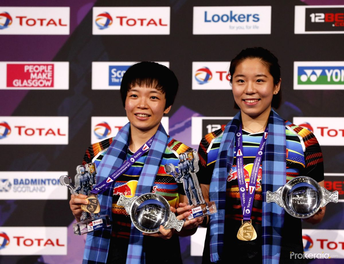 陈清晨(左)获世锦赛女双冠军